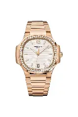 Inspirée d’un hublot de bateau, la construction de la Nautilus a franchi un nouveau cap en matière de conception de boîte, tandis que l’utilisation des nouvelles technologies a permis de garantir son étanchéité face aux éléments. Avec sa lunette octogonale arrondie, son ingénieuse construction de boîte en forme de hublot et son cadran au relief horizontal frappé, le design de la Nautilus est reconnaissable entre mille.
